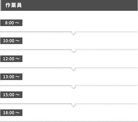 | 休日 | 日曜日 年末年始 GW 夏季 有給 |
